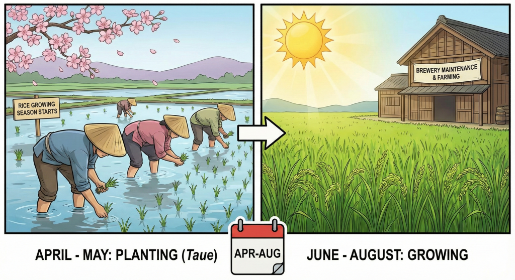 - What are the brewers doing? Interestingly, in traditional breweries, the brewers (Kurabito) are often farmers during the summer! The brewery itself is usually quiet, undergoing deep cleaning and equipment maintenance to prepare for the coming winter.