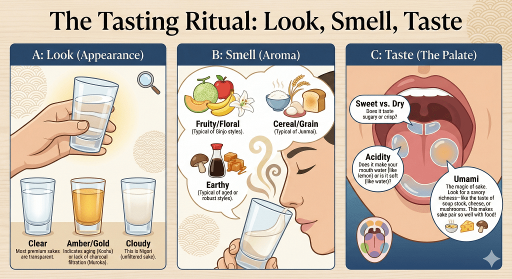 3. The Tasting Ritual: Look, Smell, Taste